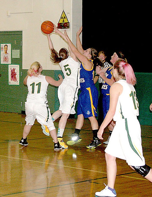 Junior Gabby Moeller cuts through the Victor offense as she goes for a lay up during the home tournament Friday.