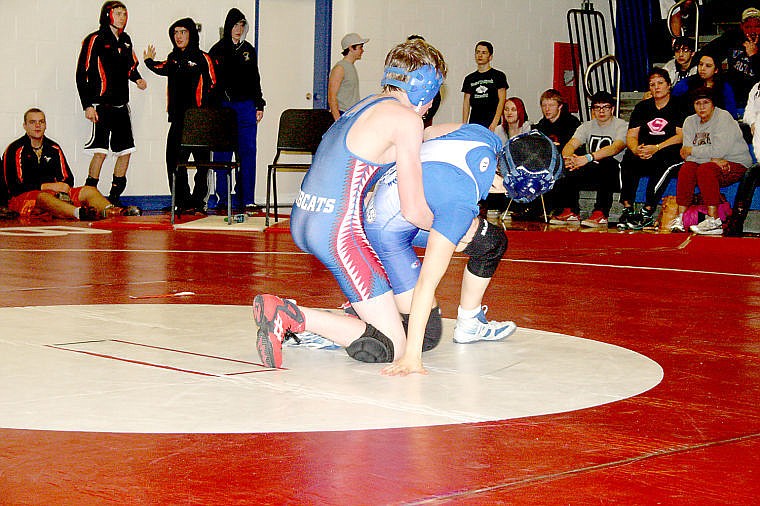 Blaine Parkin grapples with Lena Babcock from Thompson Falls during the Superior Invitational Tournament Saturday.