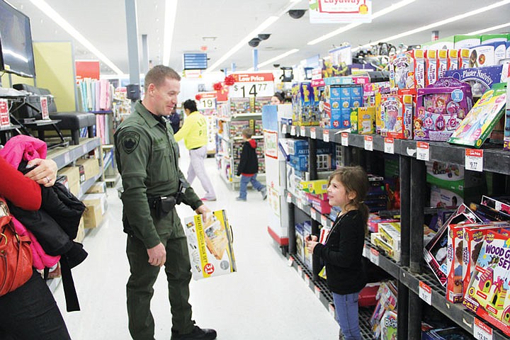 Grant County deputies and Moses Lake police joined five children from local schools and 10 from the Boys and Girls Club, as well as three deserving families, for a shopping spree Monday night.