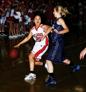 SANDPOINT — Sandpoint sophomore shooting guard Madi Schoening missed just two shots all night, pouring in 25 points to lead the Bulldogs to a 51-17 dispatching of the Badgers on Friday night before more than 1,600 fans taking in the Moose Madness festivities at Les Rogers Court.