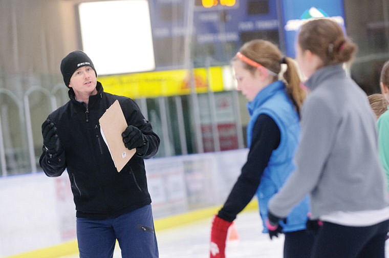 Director Chad Goodwin gives pointers during a recent rehearsal for Glacier Skate Academy’s “Christmas For All” ice show. The skating showcase, which features local skaters of all ages as well as professional guest skater Amanda Billings, takes place Saturday at Stumptown Ice Den in Whitefish.