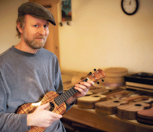 Harban placed one foot on this slippery slope when he looked into online ukulele forums and decided the idea was doable. Soon after, he was off like a shot on a journey that carried him thousands of miles away, to the shop of master luthier and ukulele builder Pete Howlett in Wales, where Harban lived and studied the art of crafting the instruments.