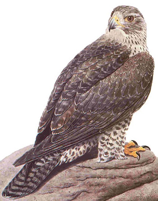 Having apparently found its next meal, the gyrfalcon bore down on the lone Hun. Then, when death seemed imminent, the Hun dove into a snowdrift at the base of a small bush. The gyrfalcon alit on the snow surface for a moment, looked around and finally rose unsuccessful to sit on a nearby fence post. Death and a meal would have to wait.