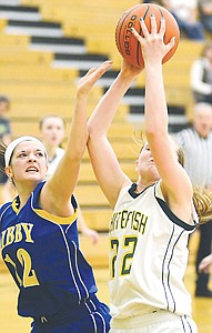Hailley Moe up for a shot vs. Whitefish Feb. 28, 2015.