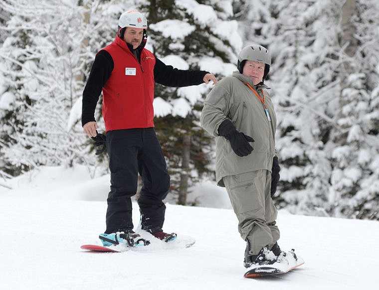 The moment was one of many memories the warriors and families will take away after spending several days in the Flathead Valley last week. In its fifth year in Whitefish, the Wounded Warrior Project brought eight warriors along with their caregivers here to experience a Montana winter. Over the course of several days, the warriors skied and snowboarded at Whitefish Mountain Resort, went on a snowshoe tour, snowmobiling, ate at a number of restaurants and made an appearance in the Whitefish Winter Carnival parade.