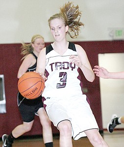 Lindsay Laws steals the ball from Kaitlyn Downey in first quarter vs. Troy, Jan. 2.