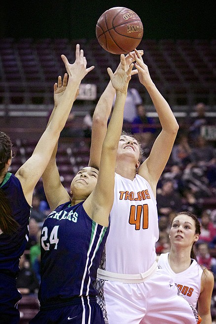 NAMPA - For a team that hadn't been to the state 5A girls basketball tournament since 2008, the Post Falls Trojans looked and played like they were right at home in the confines of the Idaho Center on Thursday afternoon.