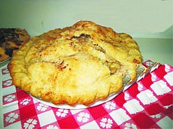 Many people enjoy sitting at the tables and eating a slice of pie immediately and then buy an extra pie to take home to share with family and neighbors.