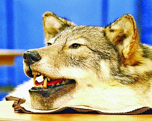 A wolf rug on display during the Wolf Trapping Certification Class held at Asa Wood Saturday.