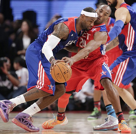 James scored 19 points but shot only 7 of 18, Bryant blocking two of his shots late, after having no shooting troubles during the latter part of the season's first half. Carmelo Anthony led the East with 26 points and 12 rebounds.