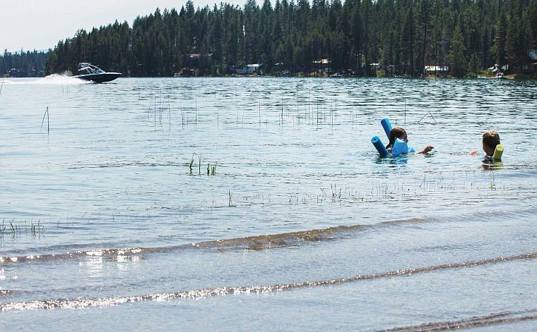 Proposals to limit boat wakes on Echo Lake have stirred up strident opposition from some Echo Lake residents. In this July 2012 photo, Ashley and Zoe Chapman swim near the Echo Lake Causeway. (Patrick Cote file photo/Daily Inter Lake)