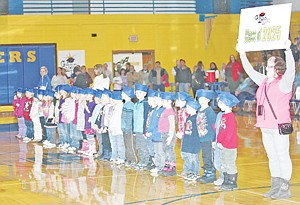 At halftime of last month’s basketball game against Troy, the Graduation Matters group brought out this year’s kindergarteners, the Libby High School class of 2025, to show that kids should think about graduating even when they are young.