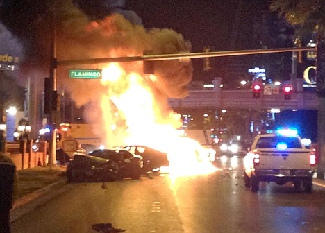 The taxi exploded into flames, killing Boldon and female passenger Sandra Sutton-Wasmund, as four other vehicles crashed like pinballs at an intersection overlooked by some of Las Vegas' most famous hotel-casinos: Bellagio, Caesars Palace, Bally's and the Flamingo.