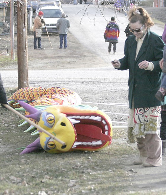 The dragon lays on the ground after the annual Dragon Festival march. The march took place at 4 p.m. Saturday in Hot Springs and was followed by a drum circle, a bonfire and a fire dance show.