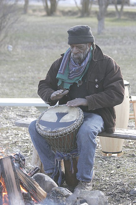 Ali Blackbird of Hot Springs drums in the drum circle.