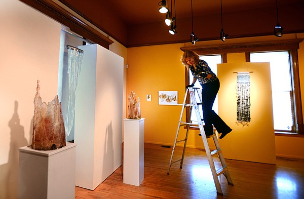 Executive Director/Curator Liz Moss arranges the lighting for the new show "Of the Earth" on Tuesday morning, February 26, at the Hockaday Museum of Art in Kalispell. The opening reception for Of the Earth is tonight from 5 to 7p.m. and is free and open to the public. (Brenda Ahearn/Daily Inter Lake)