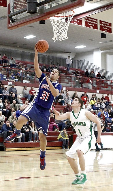 Jarrod Tippens grabs a fast break bucket against Ennis.