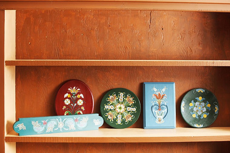 Pieces of wood with rosemaling at Alice Brosten's house. Thursday, Feb. 28, 2013 in Bigfork, Montana. (Patrick Cote/Daily Inter Lake)