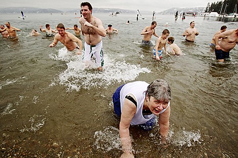 "It's warmer than the air," said Brendon Kedish of Rathdrum, plunging with friends for the fourth year.