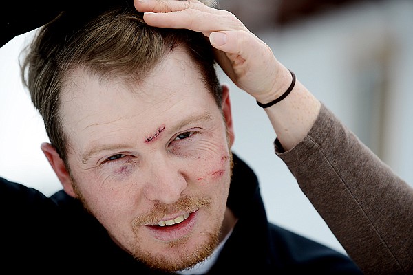 Mike Stephens displays the wounds he received Thursday.