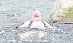 The polar bear himself, Klin splashes in the frigid water that was actually warmer than the air above. Thirteen brave souls took the dip into the Kootenai from the boat-ramp at Riverfront Park.