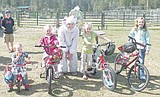 Tucker James, Dakota Allen, Rosanna Troyer and Ashlyn Monigold won bikes, with Raymond Duran playing Easter bunny. Monigold received her golden egg from friend Dillon Yeadon, who didn’t need a new bike and gave it up.