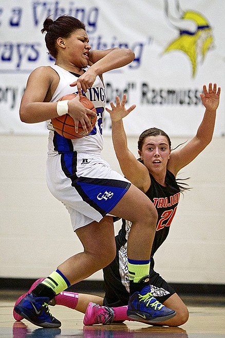 But her biggest play Tuesday night might have come on the offensive end as the Vikings, ranked No. 3 in 5A, handed the top-ranked Post Falls Trojans their first loss, 47-41 in 5A Inland Empire League play at Elmer Jordan Court.