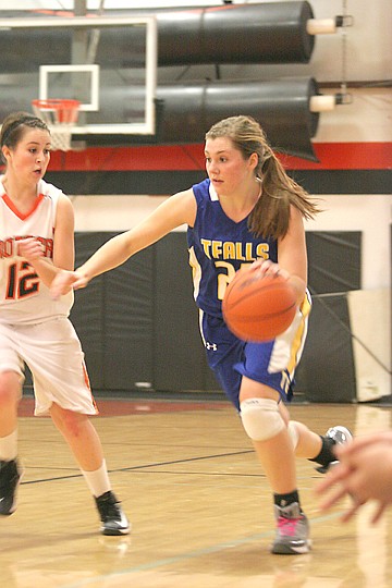 Trotter Carley VonHeeder makes a beautiful basket against Whitefish.