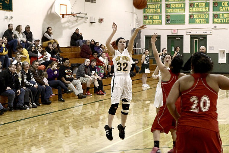 St. Regis freshman Pilar Cantrell-Field scores two of her 25-points against Two Eagle River on Friday.