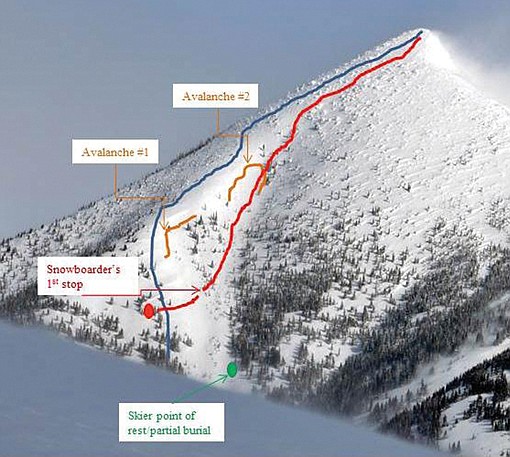 The snowboarder, who is from Northwest Montana, was below the skier when the avalanche was triggered. He was surrounded by the moving snow but able to safely ride out of the way. He then heard the skier yelling from below and went to help.