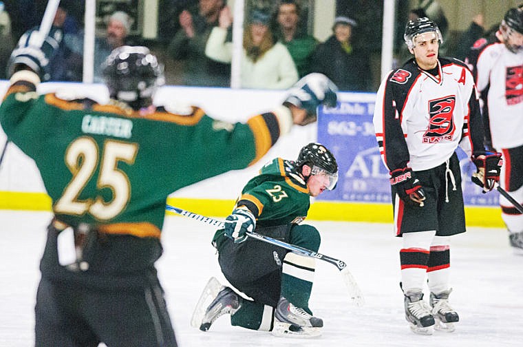 Glacier continued its parade to the penalty box as defensemen Travis Redman and Jordan Carter each took minor penalties but Glacier goaltender Mitch Tyson kicked away a shot from Bellingham’s Scott Hansen to keep the Blazers from extending their lead.