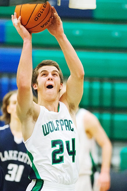Glacier's Logan Iverson eyes the basket during Glacier's nonconference game with Lake City on Saturday at Glacier High School.