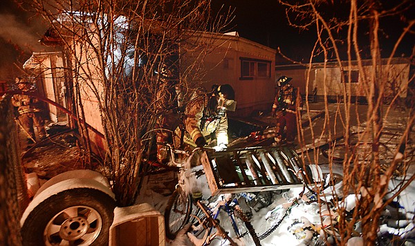 Members of the Evergreen Fire Department respond to a structure fire at 2121 Highway 2 East in Evergreen on Monday evening, January 14. (Brenda Ahearn/Daily Inter Lake)