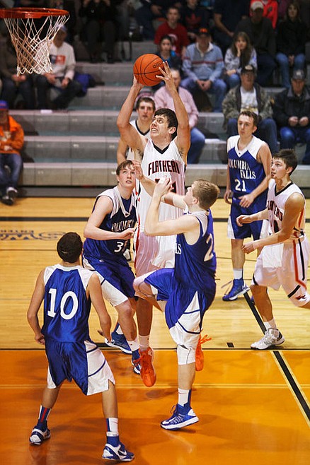 Garth West led the way for the Braves, displaying an unblockable hook shot and determination on the offensive glass en route to a game-high 19 points and 13 rebounds. West scored 13 of his points in the second half when Flathead made an effort to get the ball in the paint where he towered over 6-foot-4 Columbia Falls center Jared Trinastich.