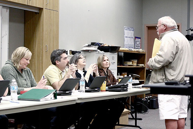 John Cheesman presents the St. Regis School Board of Trustees with a petition during a meeting Jan. 9.