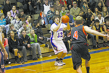 The turning point in the game came with just seconds before the half. For the first 15 minutes and 57 seconds, the undersized and undermanned Chiefs were successful dictating the pace. Coach Woll’s slow-down, half court offense put the Bulldogs out of rhythm. Aggressive drives produced easy buckets for the Chiefs, who – with three seconds before the half – were holding on to a six-point lead. But a Stuart Grant three-point buzzer-beater cut the Chiefs lead to three. The momentum Ronan built during the first two-quarters, seemed to dissipate going into the locker room.