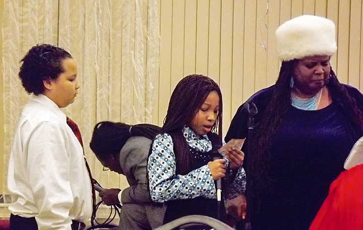 A crowd of more than 150 people watched a half-hour performance of traditional Mexican dances from children wearing colorful dresses and costumes at the Moses Lake Event Center. Children from the Harambee Theater Group in Moses Lake recited the famous "I Have a Dream" and "Free at Last" speeches. The group of about 10 children also performed a play honoring the civil rights movement. The group is run by Maryamu Givens and local children meet every Saturday to rehearse theater performances.