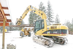Excavator operator Jon Moe loads the bucket of a front end loader Thursday afternoon as county crews clear a space for the new pistol range.