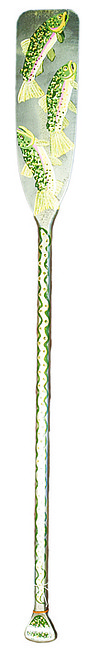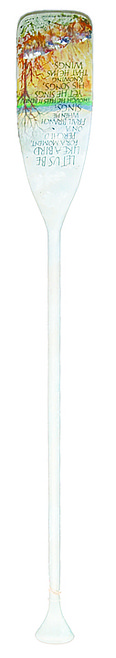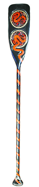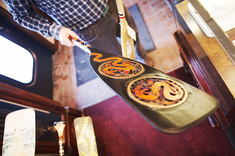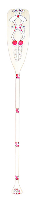 Some are typical paddles dressed up with intricate patterns and painted pictures. Springer took a three-dimensional approach to the project rather than painting it. King built a paddle of ash, myrtle and mahogany.
