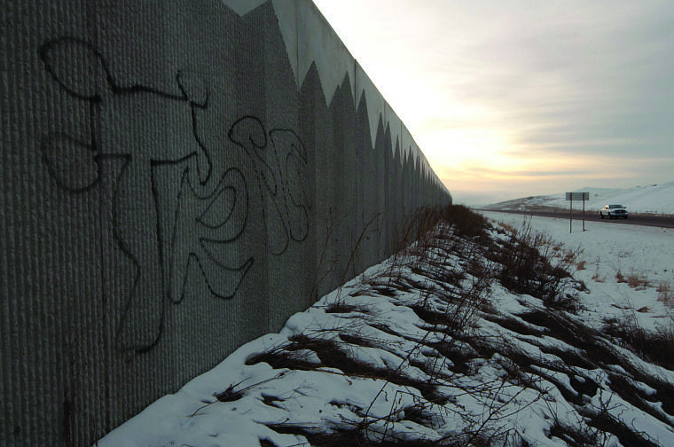 The word "Tree" was spray painted over and over along a quarter-mile-long stretch of concrete wall on the U.S. 93 bypass.