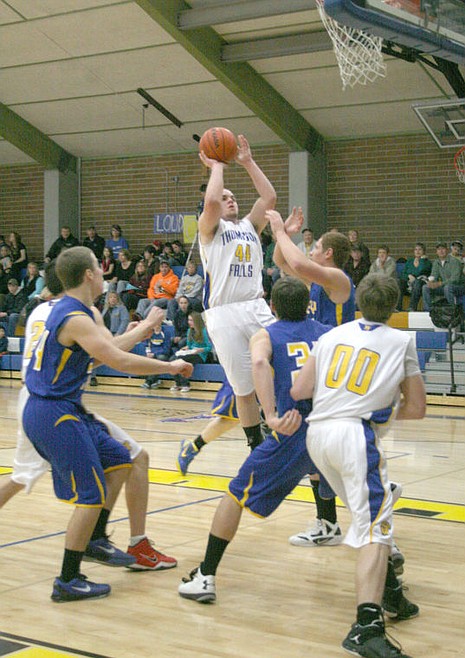 Derek Whittenburg puts the ball up during the Friday home game against Libby.