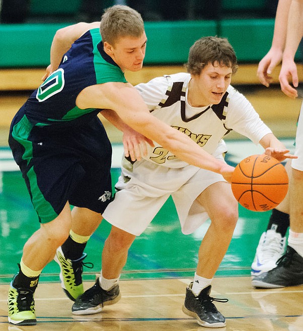 Glacier's Evan Epperly (left) steals the ball from Helena Capital's Hunter Beto at Glacier High School on Saturday afternoon.
