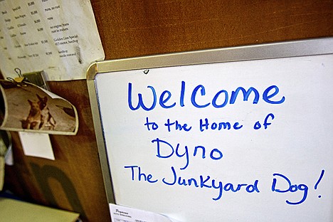 Owner L.T. Jones of Pegasus Auto Recycling chuckles when asked if Dyno really is a junkyard dog, as advertised.