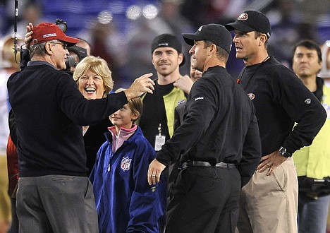 The couple had a practice run to see what it would be like to watch their sons coach against each other on Thanksgiving 2011, when older brother John's Ravens beat the 49ers 16-6.