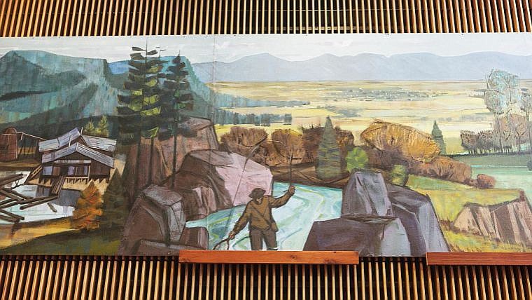 This mural hanging in the entrance of the Arts and Technology building at Flathead Valley Community College was painted by Kalispell artist Robert Huck. It was recently moved from the KM Building.