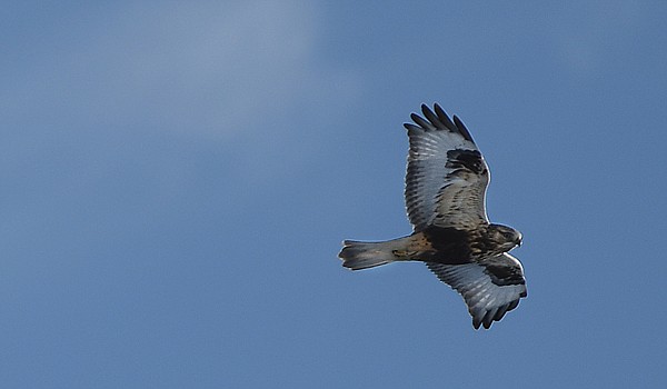 A Rough-Legged Hawk flies over Lake Blaine on Tuesday, January 29, east of Kalispell. (Brenda Ahearn/Daily Inter Lake)