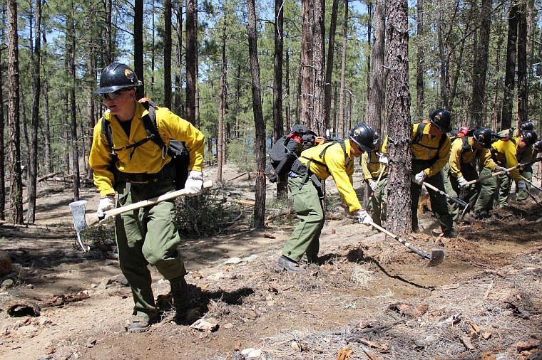 In this 2012 photo provided by the Cronkite News, the Granite Mountain Hotshot crew clears a fire line. On Sunday, 19 members of the Prescott, Ariz.-based crew were killed in the deadliest wildfire involving firefighters in the U.S. for at least 30 years. The firefighters were forced to deploy their emergency fire shelters when they were overrun by fire near the central Arizona town of Yarnell, (AP Photo/Cronkite News, Connor Radnovich)
