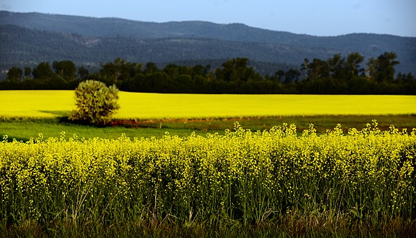 A field of canola lights up in the first rays of dawn on Tuesday along North Somers Road. (Brenda Ahearn/Daily Inter Lake)