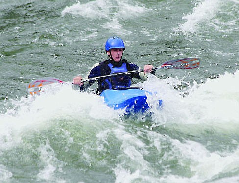 A kayaker maneuvers through the Cascade Rapids during his trek down the river at Camp Bighorn.