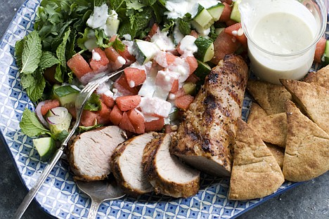 Grilled pork tenderloin with watermelon-arugula salad